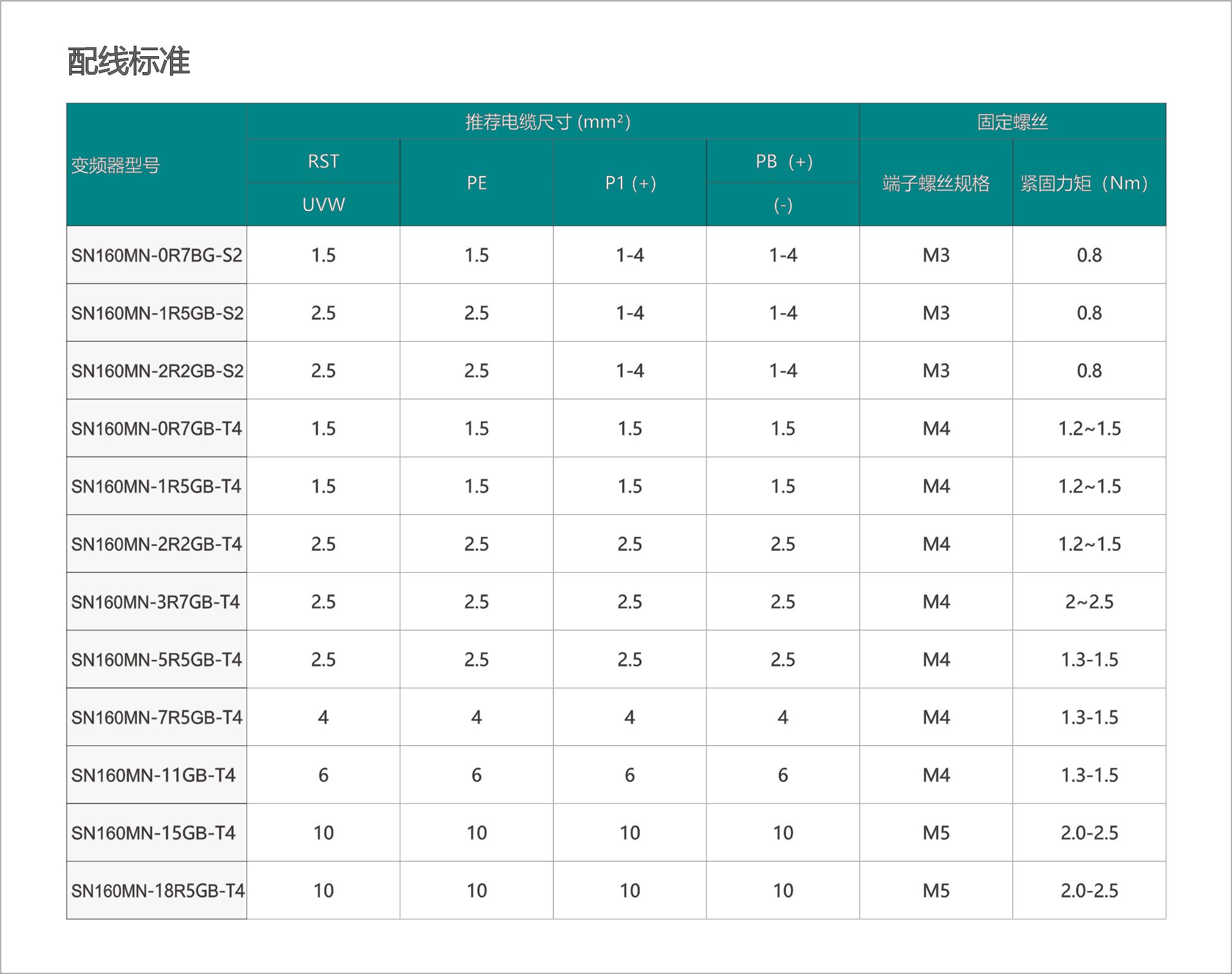 SN160MN 变频器选型手册