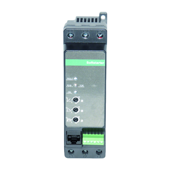 ⾯板上具备可整定的调节旋钮,基于电压斜坡启动模式,直 观的设定电压斜坡的软启动时间,启始电压与软停⽌时间,简单 易⽤。